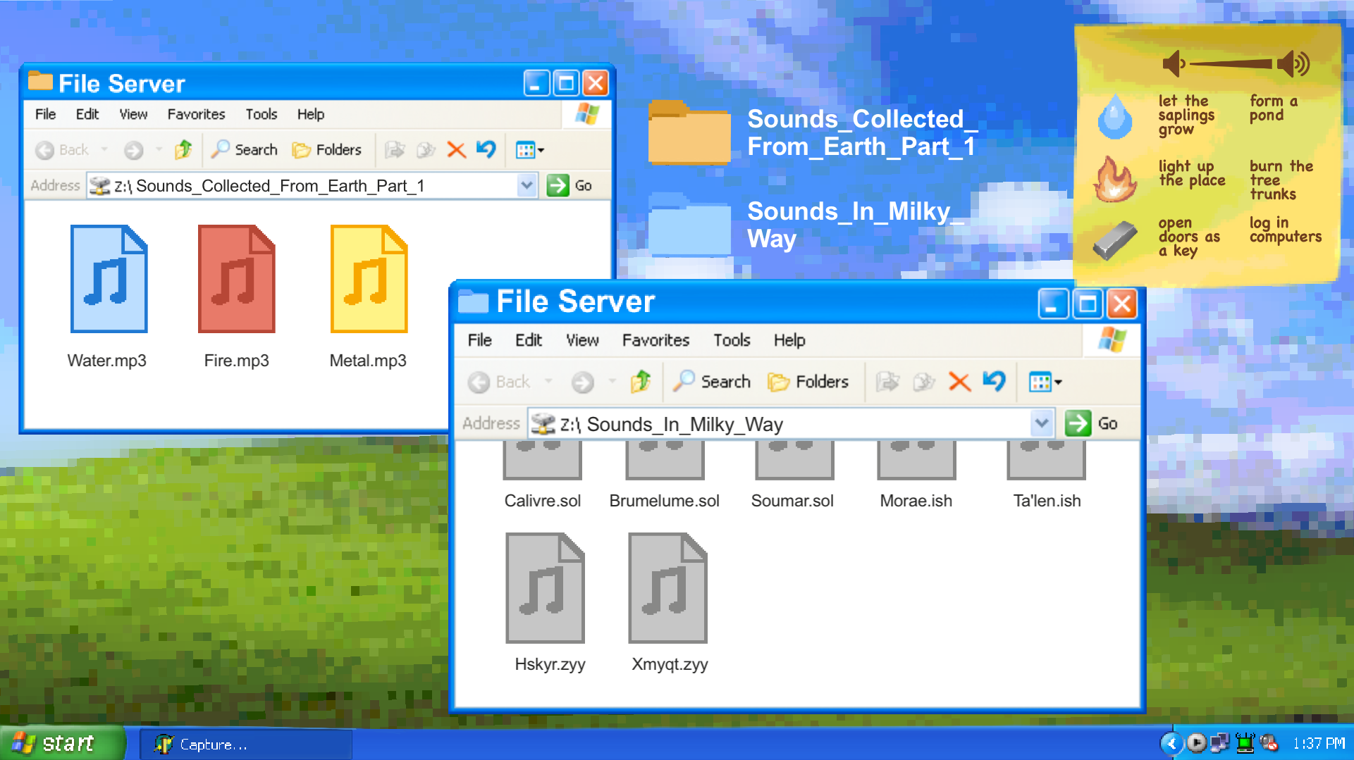 Folderita, a little girl from Computearth (a planet full of computers), likes to collect sounds all around the universe. For this time, she is trying to collect sounds on a planet called Earth. Will she make it? Come play and find out!